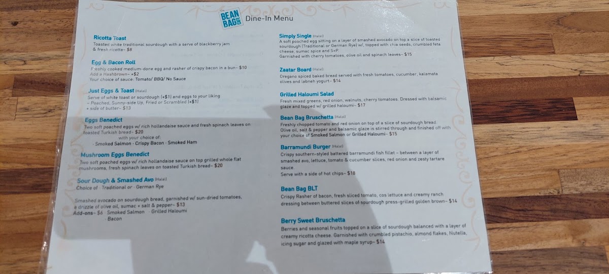 Welcome to The Bean Bag Cafe Liverpool, a hidden gem nestled in the heart of Macquarie St, Liverpool. This cozy café offers a menu designed to delight all palates. Start your day with their delectable Ricotta Toast ($8) or indulge in a classic Eggs Benedict ($20). If you're craving something heartier, the Barramundi Burger ($18) won't disappoint.